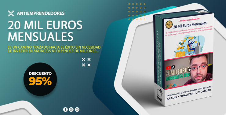 20 Mil Euros Mensuales de Antiemprendedores es más que un curso, es un camino trazado hacia el éxito sin necesidad de invertir en anuncios ni depender de millones de visitas en Youtube o Tiktok.