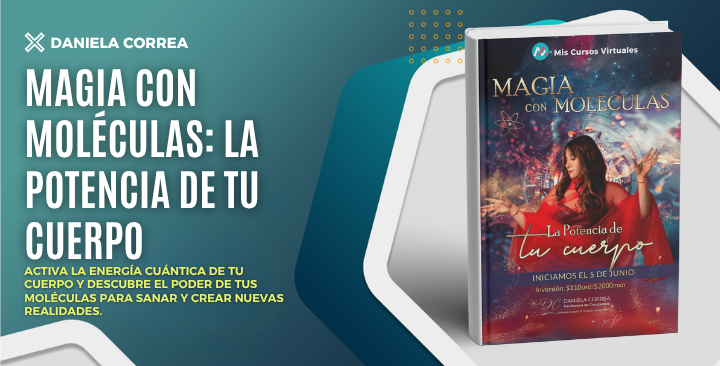 En “Magia con Moléculas: La Potencia de tu Cuerpo”, Daniela Correa te guía en un viaje profundo para reconectar con la sabiduría innata de tu cuerpo y aprender a usar su energía a nivel celular y cuántico.